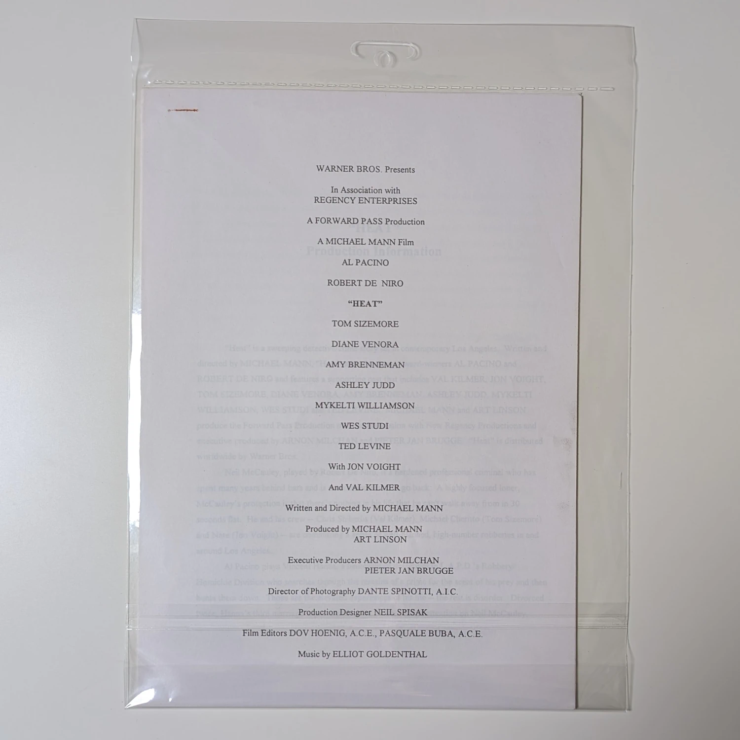 Heat (1995) Production Notes and Synopsis Sheet [A4]